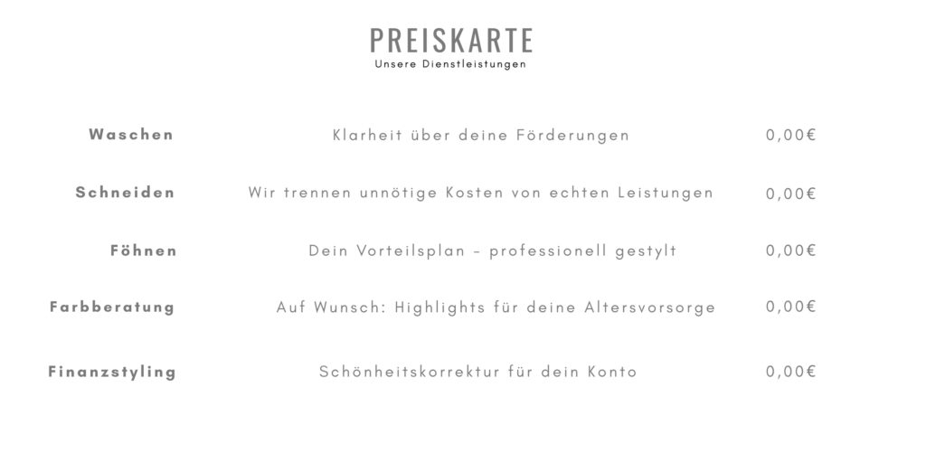 Du erhältst von uns eine kostenfreie und berufsspezifische Leistungsprüfung, Preisoptimierung & einen unabhängigen Vertragscheck.